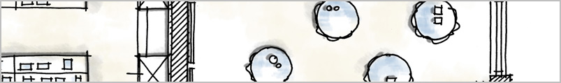 De fineliner-stijl heeft veel weg van de viltstift plattegronden, maar wat deze stijl onderscheidt zijn de dunnere lijnen en het subtielere gebruik van kleuren. Hierdoor hebben de plattegronden een verfijnde uitstraling met nog steeds het schetsmatige gevoel.