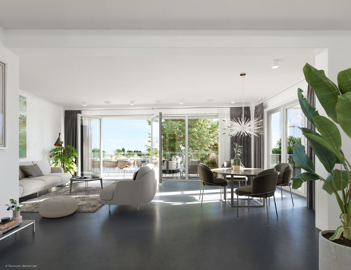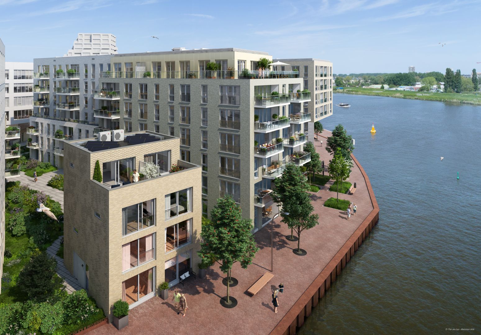 Voor dit project hebben wij door de grootte en de diverse doelgroepen verschillende AI's gemaakt, luchtfotomontages, interieur en exterieur impressies en een virtuele tour om een goed beeld te geven hoe het plan in elkaar zit.